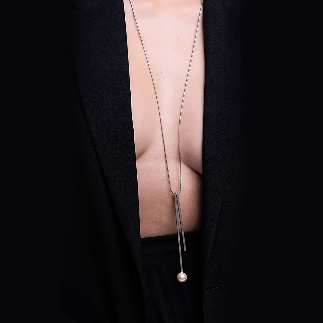 Colar em metal no banho prata envelhecido com pingente em metal prata envelhecido e pérola